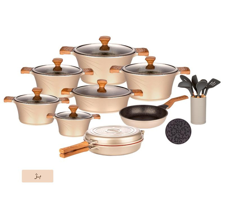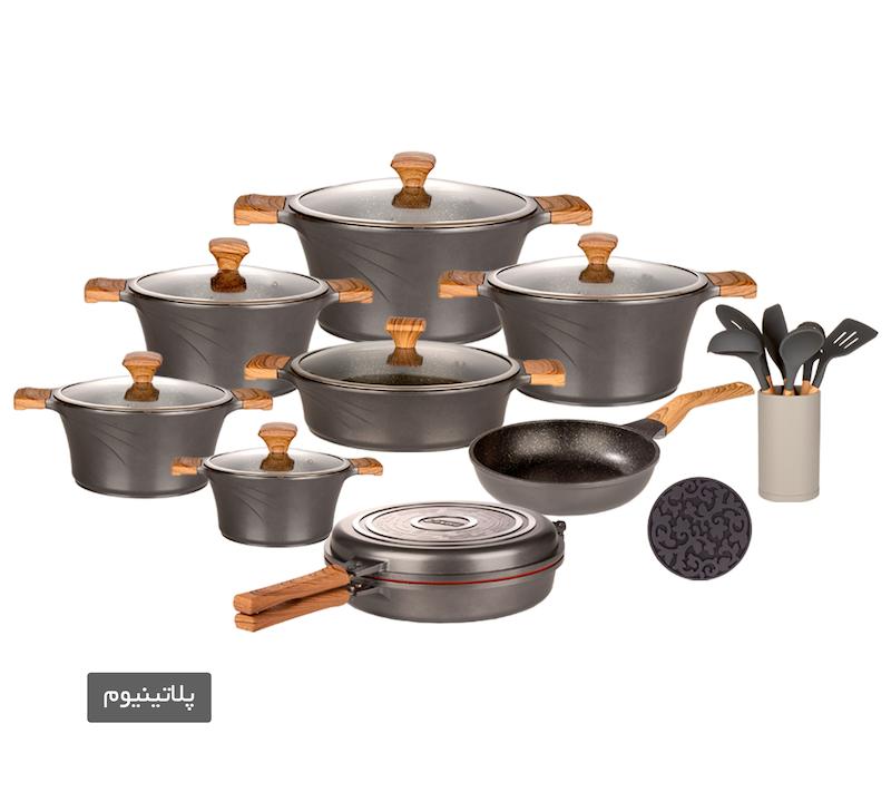 سرویس 23 پارچه سزار (تیتانیوم) درب پیرکس T مجموعه ای کامل از وسایل پخت و پز آشپزخانه است. این سرویس شامل انواع قابلمه و تابه با اندازههای مختلف است. روکش این سرویس پخت و پز از تیتانیوم است و ضخامت مناسبی دارد که باعث بهبود عملکرد در پخت و پز میشود. این سرویس شامل اقلام زیر میشود: