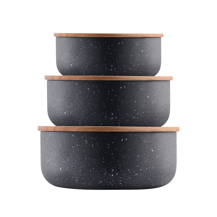 کاسه فریزری گرانیت ساخته شده از آلومینیوم 99% خالص با پوشش گرانیت و درب چوبی جهت نگهداری مواد غذایی در یخچال و حمل مواد خوراکی جهت محل کار و غیره و گرم نمودن غذا و خوراک توسط اجاق گاز و ماکروفر و حتی فر.